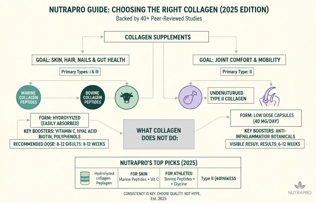 To answer this, the NutraPro Research Team analyzed more than 40 peer-reviewed studies, compared over 60 collagen supplements, and examined the most credible evidence available. This guide summarizes what truly matters.
